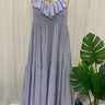 A whisper of elegance in every fold this ice blue handwoven muslin dress is crafted from ultra-soft, breathable fabric that flows effortlessly. The halter neckline with delicate ruffle detailing adds a romantic charm, while the tiered silhouette enhances volume and movement. Perfect for sunlit brunches, coastal getaways, or relaxed evenings, this dress captures the ease of summer in Label RaMa’s signature artisanal touch.