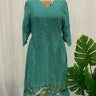Seafoam Green Muslin Jamdani Dress with Side Frills