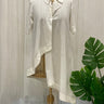 An elegant ode to minimalism, this White Khadi High-Low Shirt Dress is crafted from handspun, handwoven khadi ,celebrated for its breathability and soft texture. The silhouette features a relaxed fit with an asymmetric hemline that adds fluidity and modern ease. A structured collar and half sleeves balance its effortless flow, making it perfect for both everyday wear and quiet evenings. Finished with natural khadi texture and soft drape, this timeless piece embodies Label RaMa’s philosophy of understated luxury and artisanal purity.