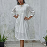 Handwoven White Muslin Midi Dress with Soft Gathers