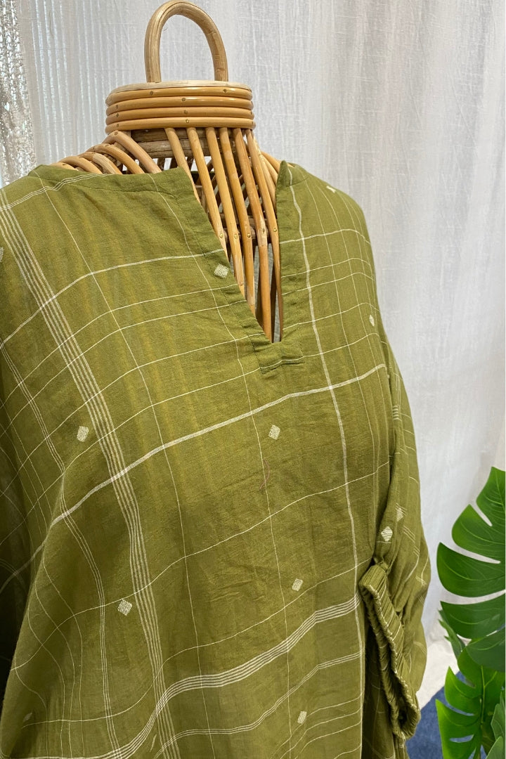 Olive Green-White Checked Muslin Jamdani Co-ord Set