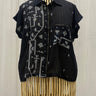 Crafted from 100% pure muslin cotton, this handwoven black Jamdani shirt blends traditional weaving artistry with modern tailoring. The shirt features metallic silver geometric Jamdani motifs across one panel and subtle crosses on the other, creating a striking contrast. Designed with a relaxed silhouette, drop shoulders, and a classic collar, it’s versatile enough for both daywear and evening layering.