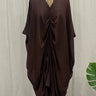 This Brown Handwoven Cotton-Silk Draped Midi Dress blends artisanal craftsmanship with contemporary elegance. Made from handwoven cotton-silk fabric, it features a soft sheen and natural texture that enhance its fluid drape. The asymmetric gathers at the front create a sculpted silhouette that flatters all body types. Designed with a relaxed fit, V-neckline, and mid-length hem, this dress transitions seamlessly from daywear to evening occasions. A timeless piece that embodies understated luxury and effortless grace.