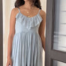 Ice Blue Handwoven Muslin Tiered Dress with Ruffled Neckline