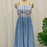 A breezy ode to handcrafted elegance, this White and Blue Muslin Jamdani Empire Dress blends traditional weaving with modern design. The bodice features handwoven Jamdani stripes in white and powder blue, intricately detailed with soft geometric motifs, while the empire waistline flows into a gathered muslin skirt that moves effortlessly with every step. Light, airy, and exquisitely soft against the skin, this dress captures the essence of slow-made luxury , ideal for daytime soirees, travel, or relaxed summer evenings.
