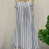 White and Blue Jamdani Dress with Border and Shoulder Tie Straps