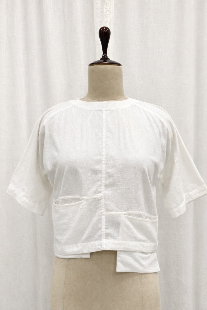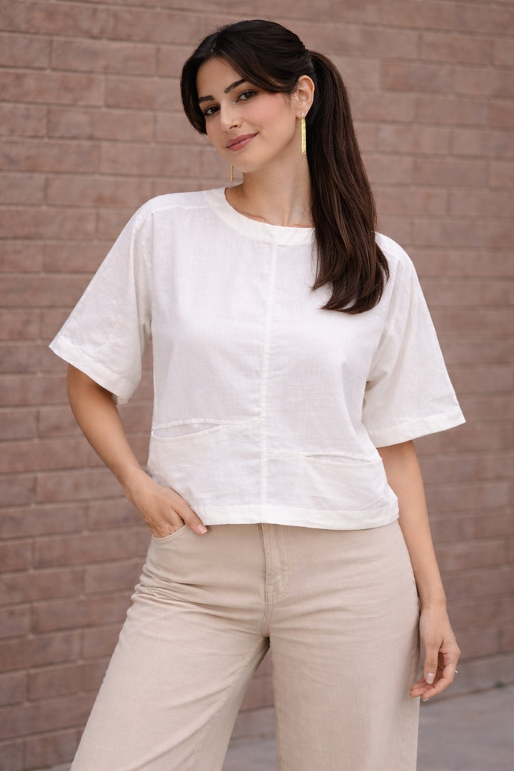 White Handwoven Khadi Pocket Top